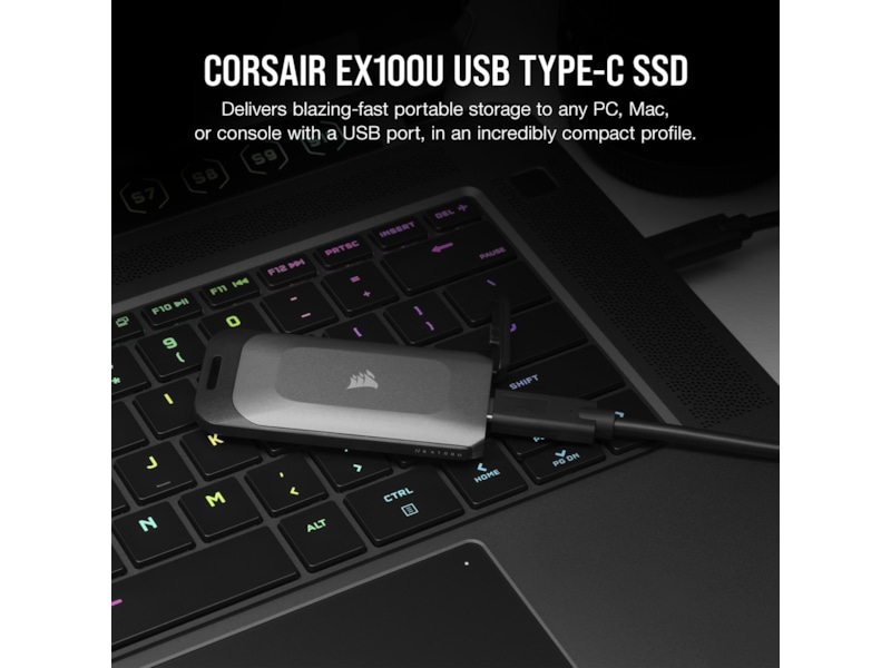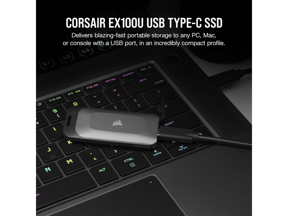 Enten du har utrolig store filer eller mange digitale spill, kommer CORSAIR EX100U i kapasitetsstørrelser på 1 TB, 2 TB eller 4 TB, for rikelig med lagringsplass for dine behov.