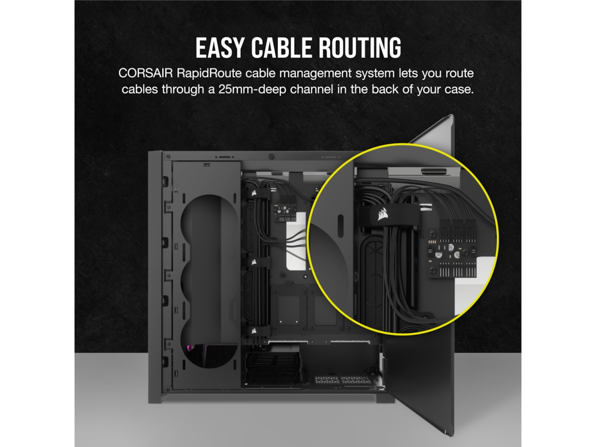 Før hovedkablene raskt og enkelt gjennom én enkelt skjult kanal, med romslig 25 mm plass bak hovedkortet for alle kablene dine, enkelt skjult av en hengslet ståldør.
