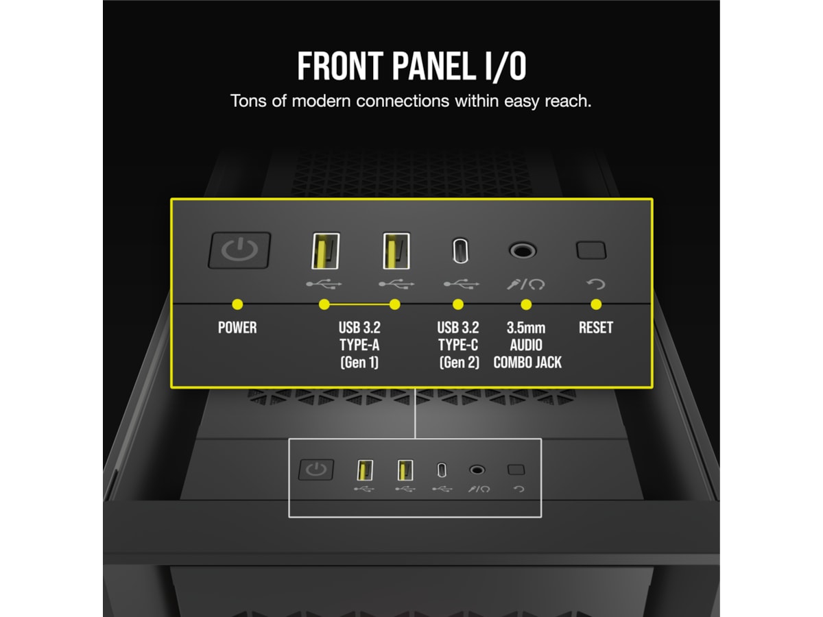 Et optimalisert frontpanel leverer massiv luftstrøm til systemet ditt for maksimal kjøling.