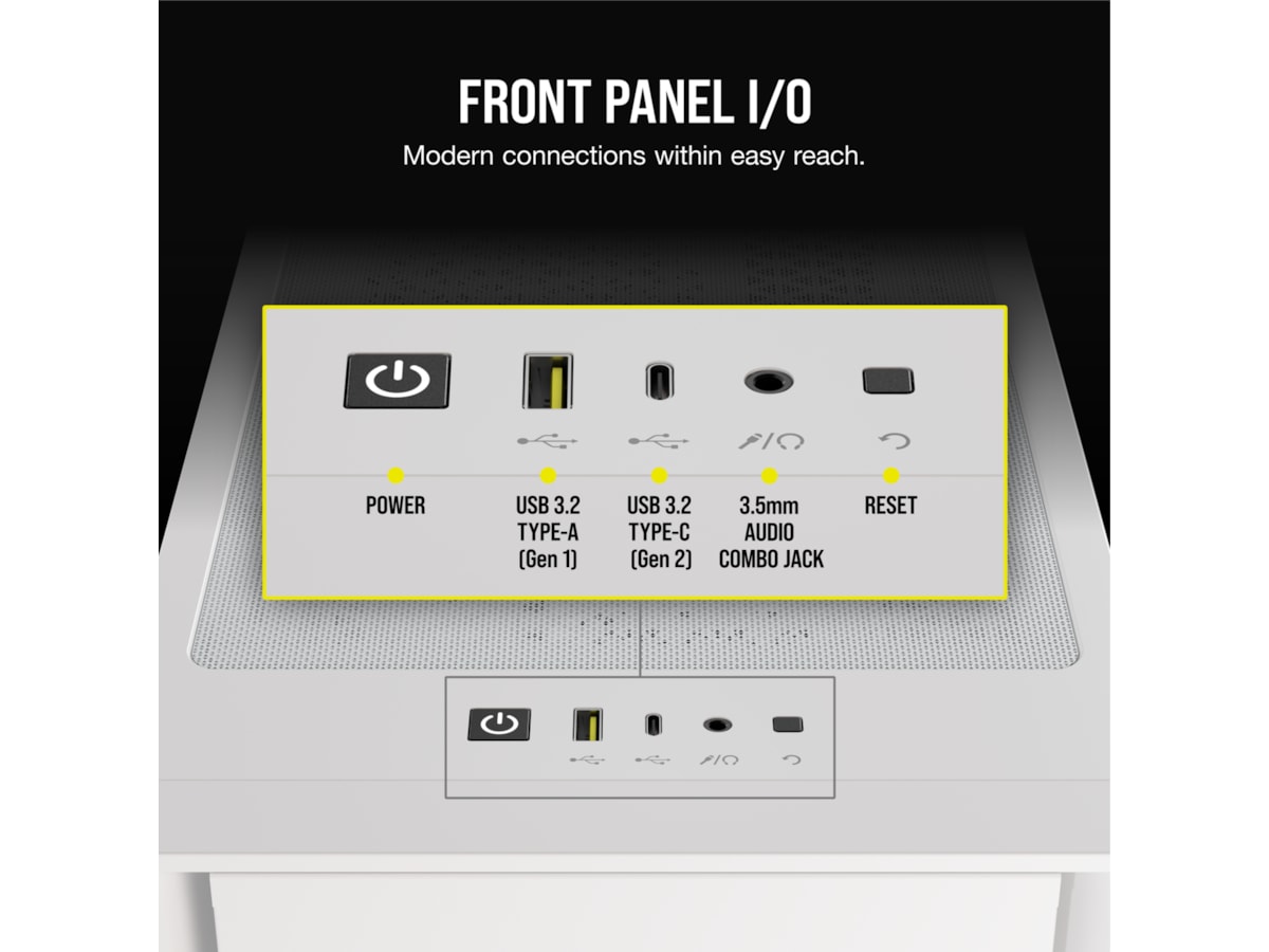 Et optimalisert frontpanel leverer massiv luftstrøm til systemet ditt for maksimal kjøling.