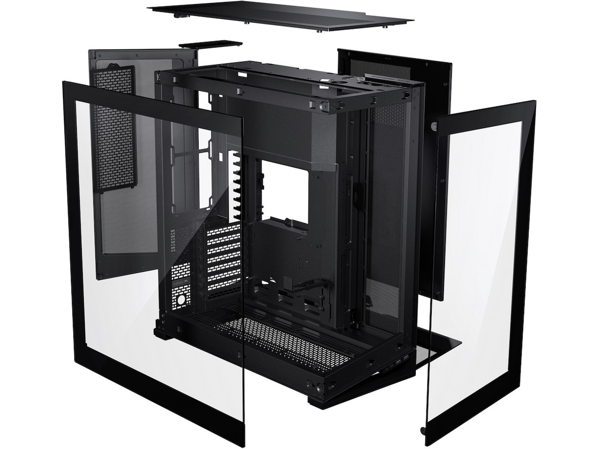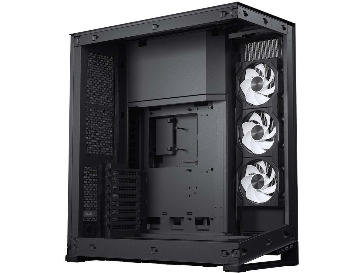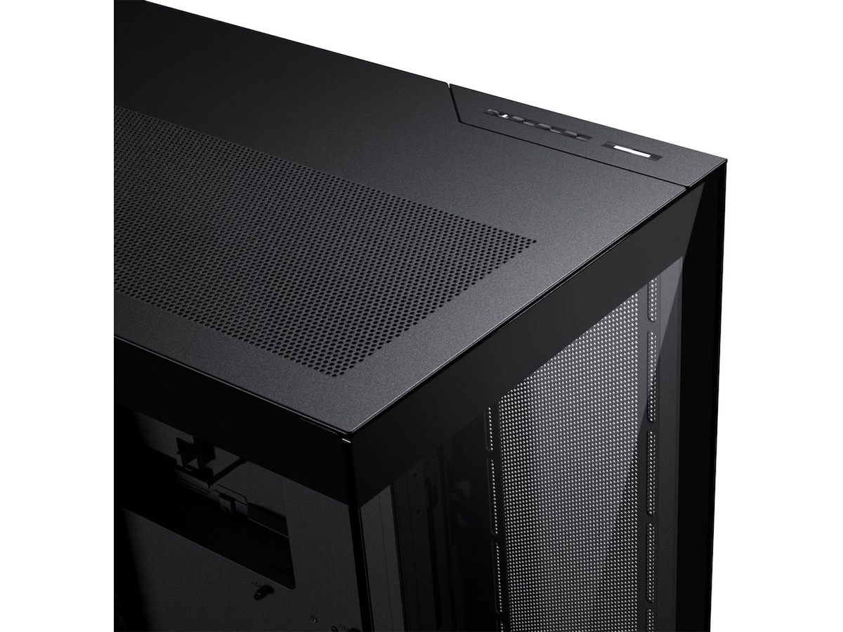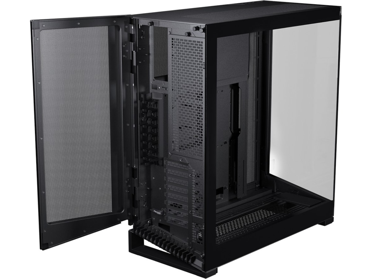 Phanteks NV7, med sin umiskjennelige design, fremhever systemkomponentene med hovedkortet i sentrum. Et definerende designelement i NV7 er den sterke ytre rammen som fremhever maskinvarekomponentene.