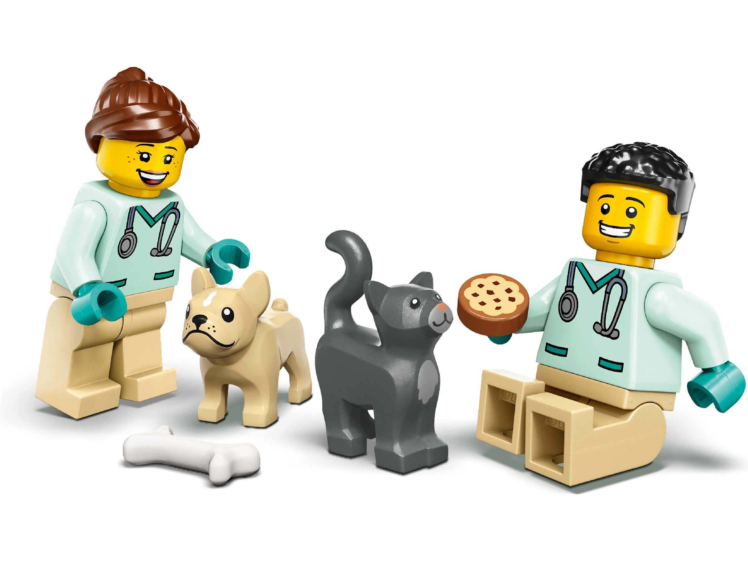 - Fantasifull lek – barn kan stelle syke kjæledyr på båren før de plasserer dyrlege-minifigurene i førerhuset og kjører dyrene til nærmeste dyreklinikk