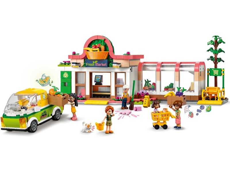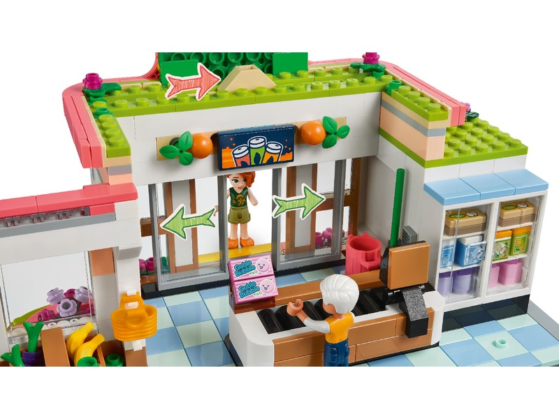 Inspirer barn fra åtte år til kreativ rollelek i matbutikken med byggesettet LEGO® Friends Økologisk matbutikk (41729). Settet inneholder masse matbutikk-tilbehør som barn kan bruke for å utforske figurenes interesser. Autumn er kjempeopptatt av miljøvern, og derfor handler hun i den økologiske matbutikken. Her møter hun vennen Leo, som elsker å lage mat og teste nye oppskrifter. Modellen har gøyale elementer fra virkelighetens matbutikker, inkludert skyvedører, handlevogner, resirkuleringsbeholder og varebil. Settet inneholder fire minidukker, lillesøsteren Alba og katten Churro. Inspirer unge byggere Med appen LEGO Builder får barn en enkel og intuitiv byggeopplevelse. Her kan de zoome og rotere modeller i 3D, lagre sett og spore fremdriften sin. Velkommen til neste Heartlake City generasjon Barn får nye venner, kan utforske spennende steder og iscenesette realistiske situasjoner i LEGO Friends universet.