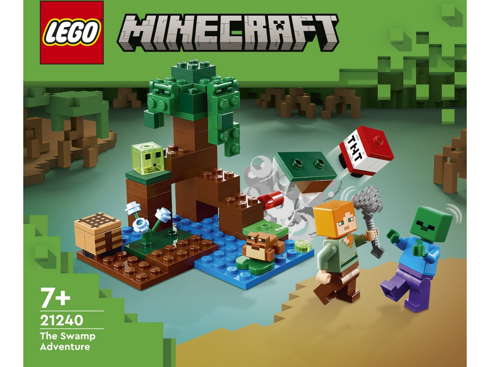 Gled Minecraft® spillere fra sju år med det fysiske, kreative og actionfylte settet LEGO® Minecraft Sumpeventyret (21240). Bygg og utforsk med gøyal Minecraft-leke Gi barn den kreative spenningen fra Minecraft-dataspillet med denne fysiske modellen av det farlige sumplandskapet. Dette allsidige leketøyet inkluderer Minecraft-favoritten Alex som drar på oppdagelsesferd gjennom mangrovesumpen på Minecraft-eventyr. Det inneholder kreative byggemuligheter og to fiendtlige mober å kjempe mot – en zombie og en slime – pluss en vennlig frosk som følger med på det hele fra vannliljebladet sitt. Barn kan hjelpe Alex med å bruke øksen og holde fiender på avstand ved å detonere TNT med hendelen. LEGO Builder appen byr på ekstra digital moro med intuitive verktøy for zooming og rotering som barn visualiserer modellen med mens de bygger.