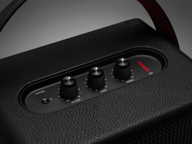 Ta med deg showet på veien med Tufton, den mektigste portable høyttaleren fra  Marshall. Tufton har over 20 timers portabel spilletid, slik at du kan gå lengre over større tid.