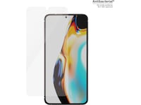 En PanzerGlass™-skjermbeskytter fungerer som en diskret kollisjonspute for å beskytte enheten din. Det herdede glasset absorberer støt og sikrer høy motstand mot riper. Den har et anti-fingeravtrykkbelegg som hjelper deg med å holde enheten fri for flekker. Dessuten inneholder belegget et aktivt antimikrobielt stoff som dreper bakterier på glasset. Det er bevist å drepe opptil 99,99 % av de vanligste overflatebakteriene og er godkjent for bruk i EU (BPR) og USA (EPA).