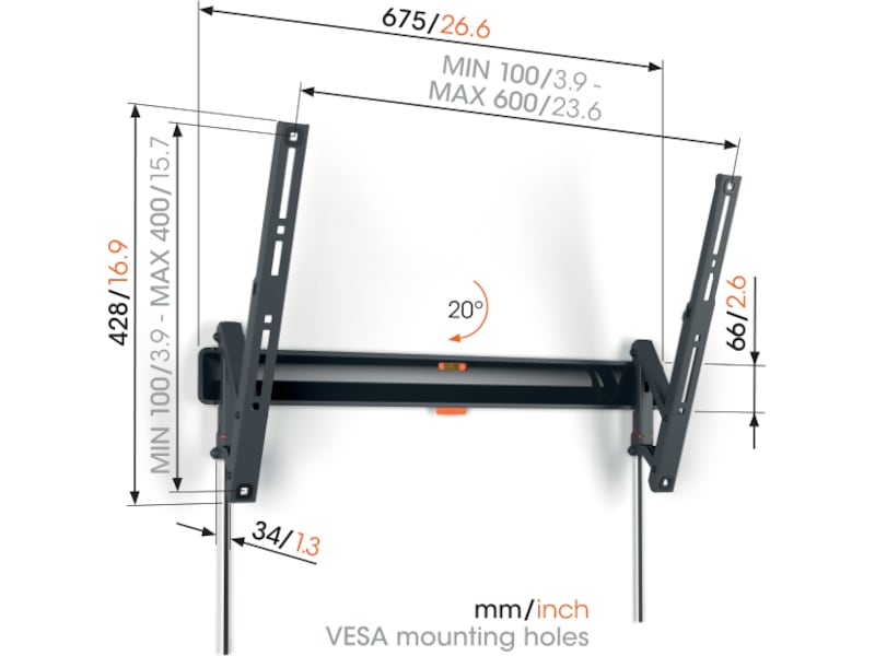 Er du på jakt etter et sikkert og stilig veggfeste for den store flatskjerm-TV-en din? Et som du kan vippe fordi du vil montere TV-en litt høyere på veggen, for eksempel på soverommet? I så fall er dette COMFORT Tilt TV-veggfestet det perfekte valget. Du kan vippe det opp til 20° for å skape den ideelle visningsvinkelen. Veggfestet passer for store TV-er fra 40 til 77 tommer og som veier opptil 35 kg.