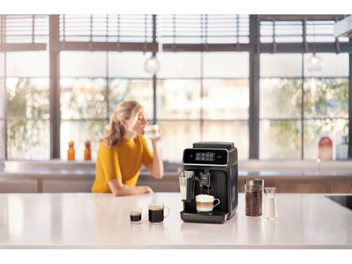 Lag deilige kaffevarianter som espresso, vanlig kaffe og cappuccino helt enkelt med ett knappetrykk. LatteGo, som heller silkemykt melkeskum i variantene med melk i, kan enkelt konfigureres og rengjøres på så lite som 15 sekunder*