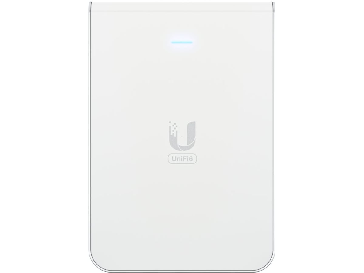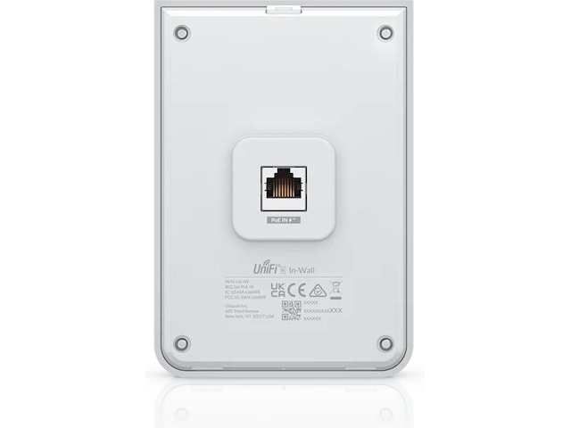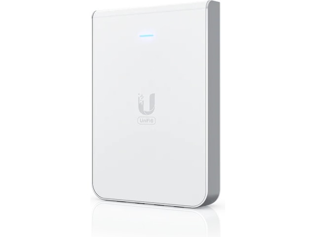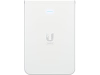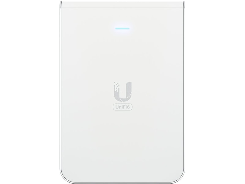 Ubiquiti U6 tilgangspunkt som monteres i veggen Veggmontert WiFi 6-tilgangspunkt med en innebygd PoE-bryter.