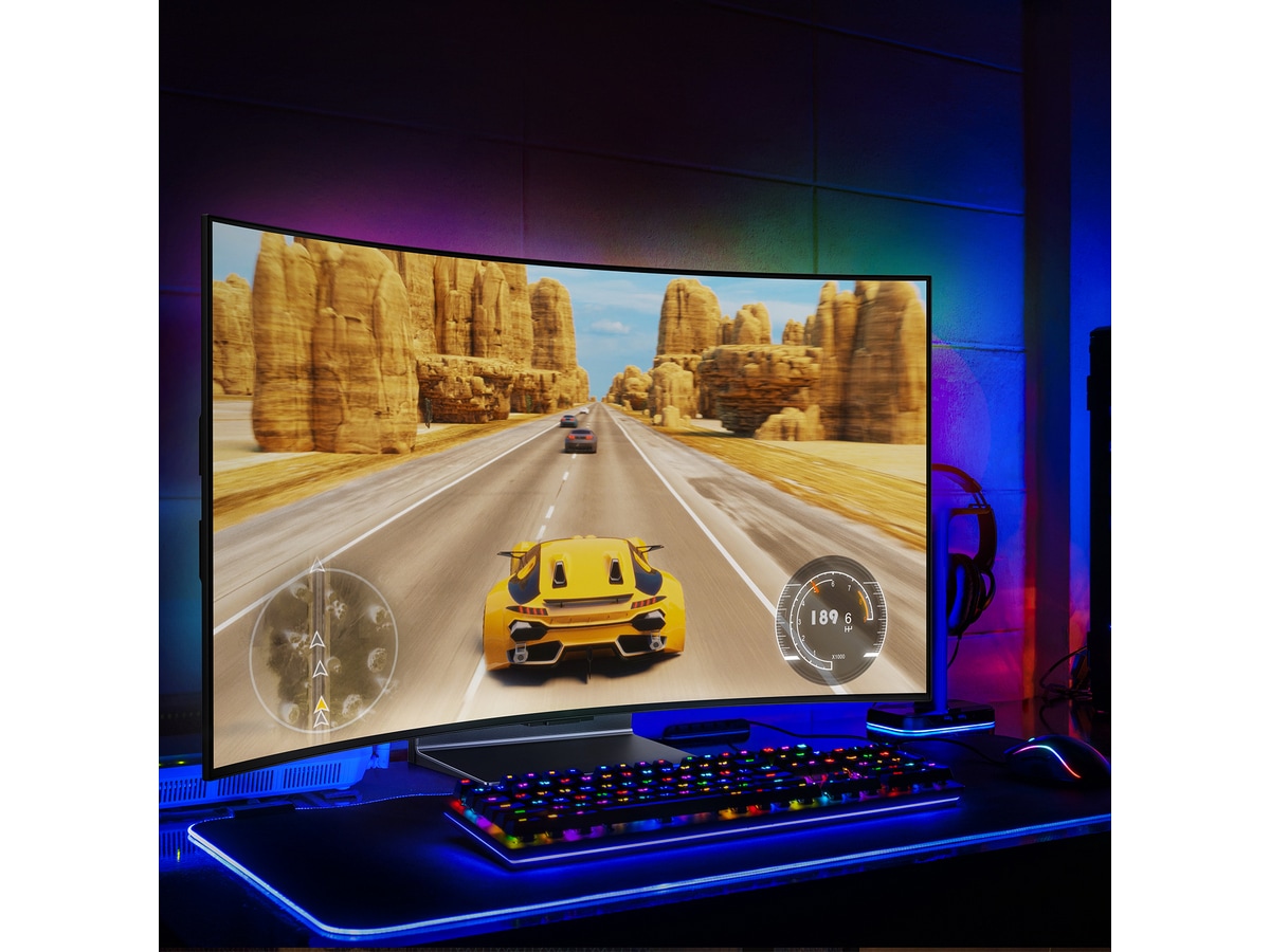 Basert på intern testing er maksimal kurve lik produkter med fast kurve på 900R, og minimum kurve er lik en flatskjerm.
