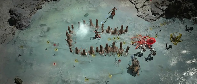 Kampene tar en vending når du går inn i PvP-soner. Marker deg selv som «fiendtlig», så lar disse høyrisiko-områdene i Sanctuary deg kunne angripe andre spillere for å få å kloa i verdiene deres. Men vær forsiktig. Dette åpner for at du også kan bli overrumplet.