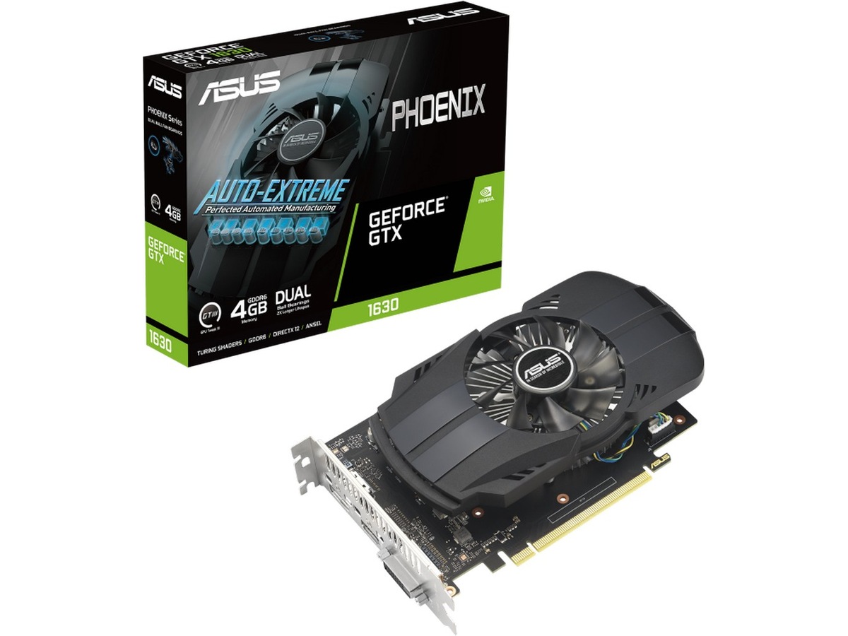 - ASUS Phoenix GeForce® GTX 1630 er bygd med den kraftige grafikkytelsen til den prisvinnende NVIDIA Turing™-arkitekturen. Ta steget opp til bedre gaming med GeForce GTX.
