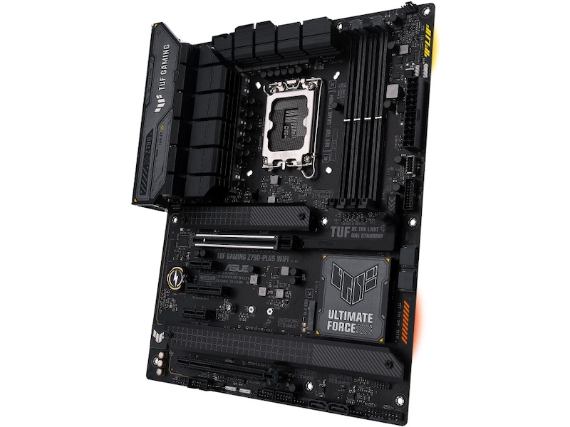 TUF GAMING Z790-PLUS WIFI tar alle de essensielle elementene fra de nyeste Intel®-prosessorene og kombinerer dem med spillklare funksjoner og dokumentert holdbarhet. Dette hovedkortet er konstruert med komponenter av militær kvalitet, en oppgradert strømløsning og et omfattende kjølesystem, og overgår forventningene med bunnsolid ytelse for lange gamingøkter. TUF GAMING-hovedkort gjennomgår også strenge holdbarhetstester for å sikre at de kan håndtere forhold der andre kanskje svikter. Denne modellen har et preget navneskilt og geometriske designelementer for å gjenspeile påliteligheten og stabiliteten som definerer TUF GAMING-serien.