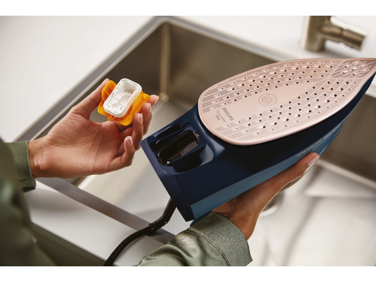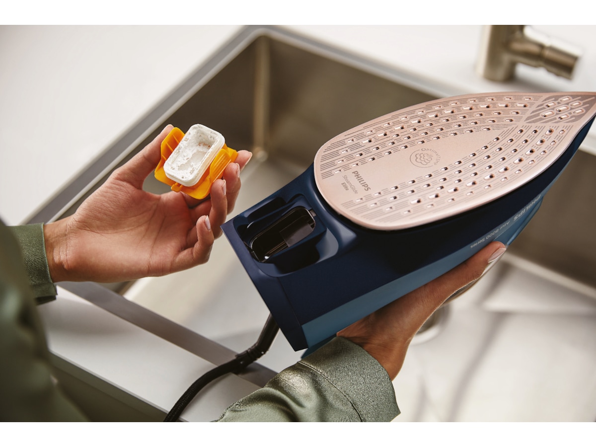Glid jevnt over krøllene med den superglatte SteamGlide Elite-strykesålen som er skånsom mot klærne dine. Superglatt SteamGlide Elite-strykesålen er slitesterk, ripebestandig og lett å holde ren.