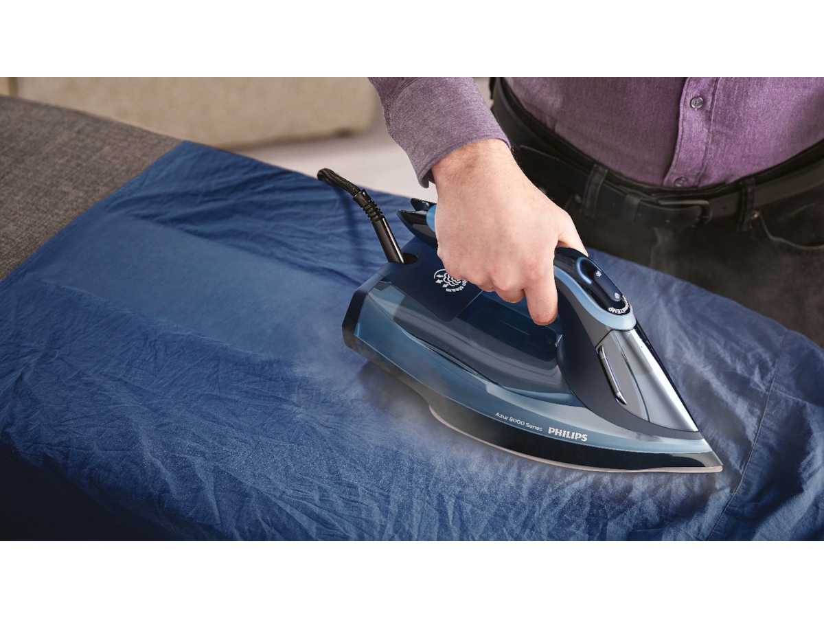 Stryk klær problemfritt med den nye Philips Azur 8000-serien. Kom i gang på et blunk med 3000 W for rask oppvarming og høy ytelse. OptimalTEMP-teknologien beskytter dessuten mot brannskader på stoff.