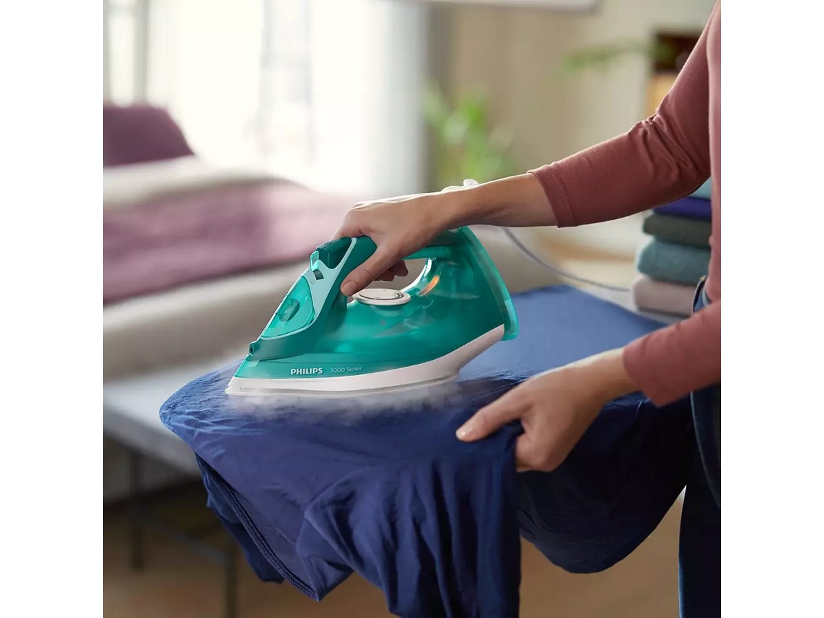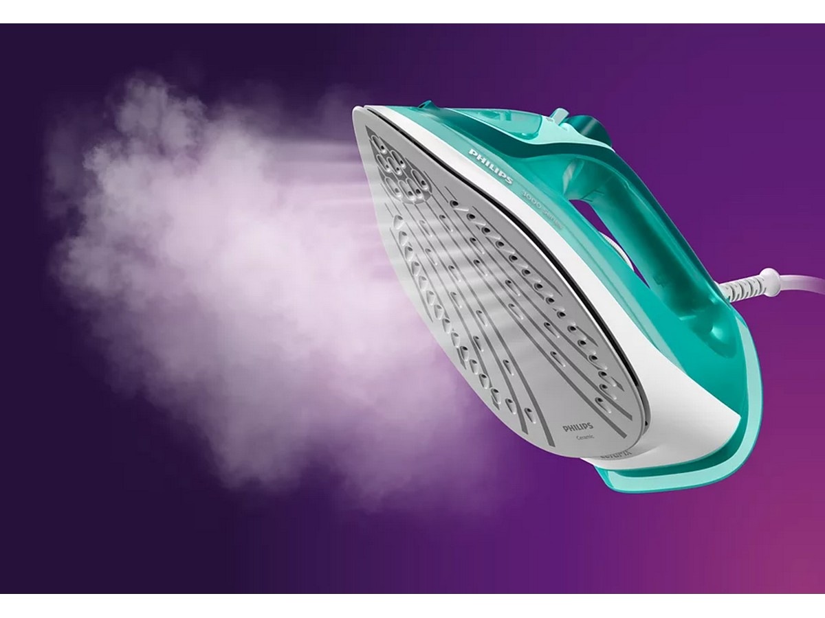 Dampstrykejernet i 3000-serien gjør strykingen enkel med et kraftig dampstøt som fjerner vanskelige skrukker. Den keramiske strykesålen sørger for en jevn stryking, mens vannbeholderen på 300 ml er stor nok til å bli ferdig med mindre mengder tøy uten påfylling.