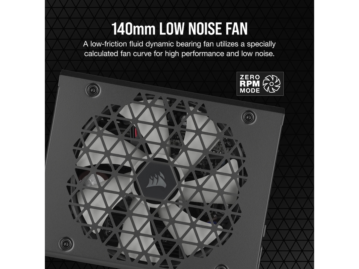 En 140 mm-vifte med væskedynamisk lager med lav friksjon og støtte for Zero RPM-modus sikrer at strømforsyningen kjører kjølig samtidig som den holder seg praktisk talt stille når den ikke er under høy belastning.