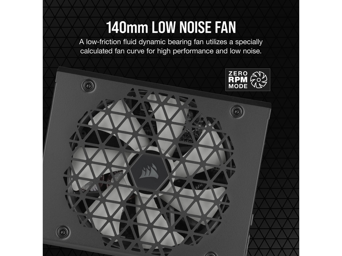 En 140 mm-vifte med væskedynamisk lager med lav friksjon og støtte for Zero RPM-modus sikrer at strømforsyningen kjører kjølig samtidig som den holder seg praktisk talt stille når den ikke er under høy belastning.