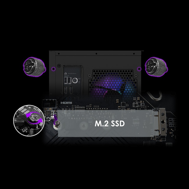 Det herdede glasset kan raskt skrus løs for fjerning ved hjelp av vingeskruer, og EZ-klemmen gjør det enkelt å oppgradere en SSD uten bruk av verktøy.