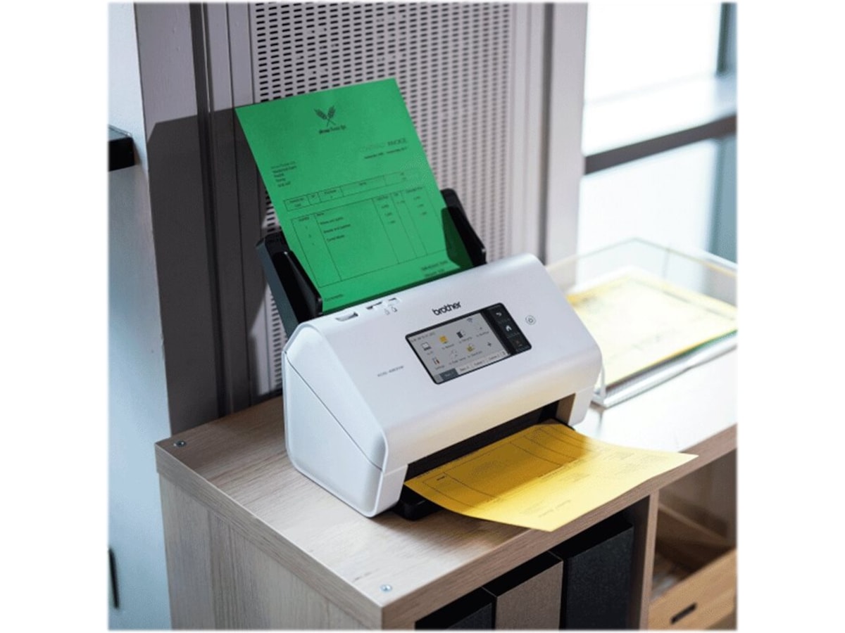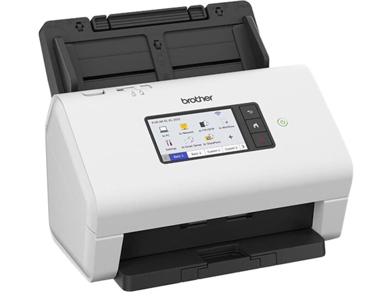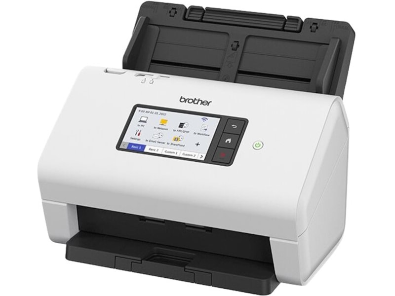 | Skannerfunksjoner | Auto Deskew, Automatisk detektering av sidestørrelse, Remove Background, Automatic Separation, Blank side sløyfing, Automatisk bildedreining, One-Touch button, Long Document Scanning, 10,9 cm fargeberøringsskjerm, Wi-Fi Direct |