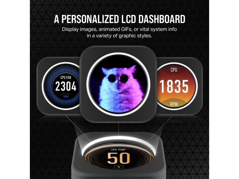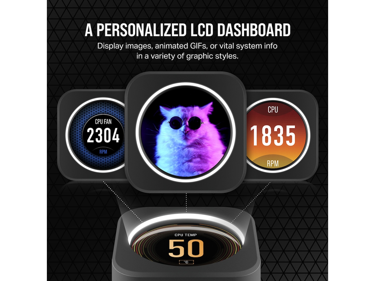 Kombinerer kraftig, støysvak kjøling med en personlig tilpasset LCD-skjerm for å fremheve systemets estetikk og spore ytelsen i sanntid.