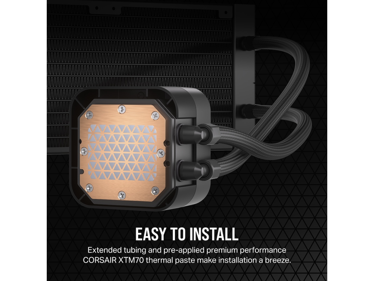 Alle ELITE LCD XT alt-i-ett-kjølere inkluderer ferdig påsmurt CORSAIR XTM70 Extreme Performance-kjølepasta for maksimal varmeoverføring fra den eksklusive prosessoren til den kjøligere kaldplaten.