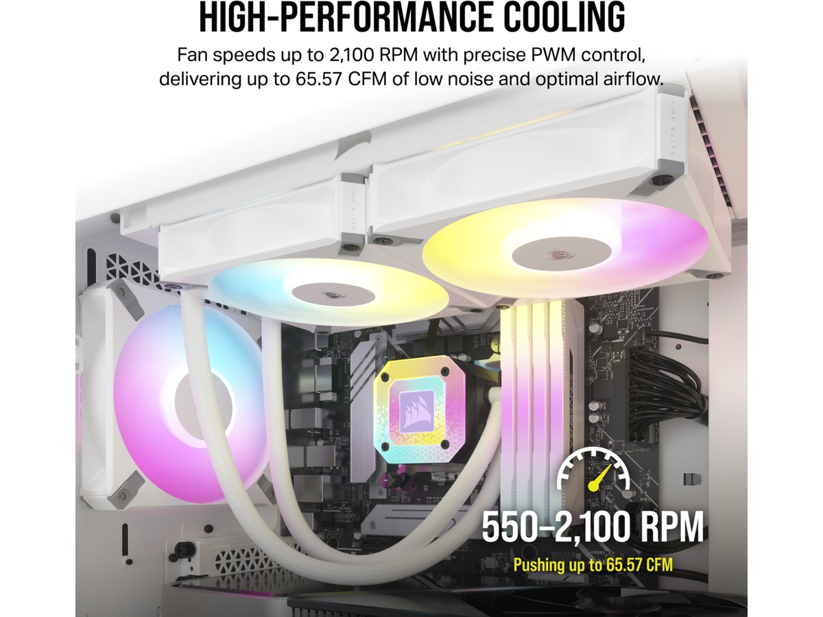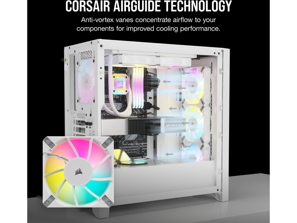 Funksjoner CORSAIR AirGuide-teknologi, Pulsbreddemodulerings-(PWM)-støtte, Antivirvelvinger, ARGB LED-belysning, Null OPM-viftemodus