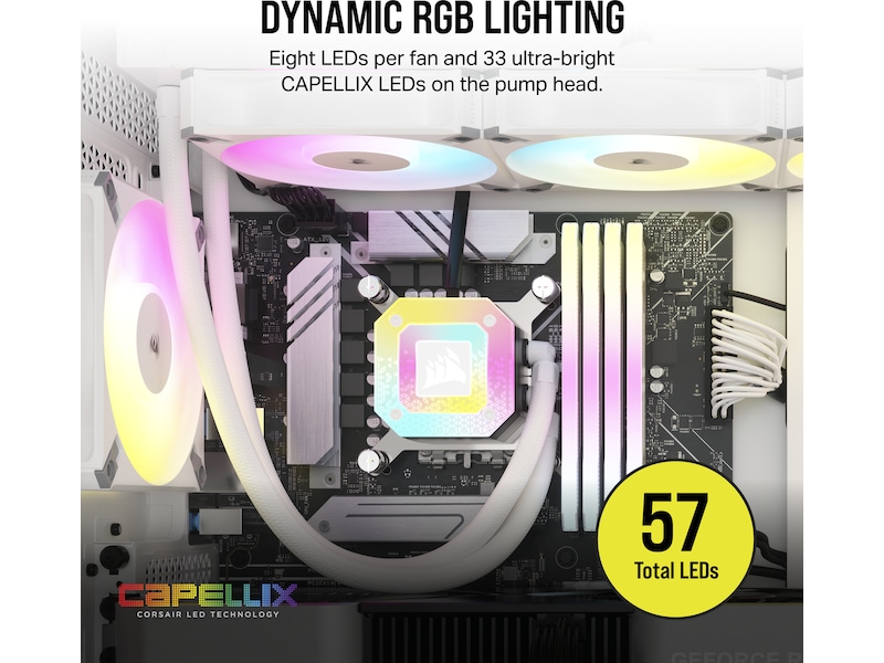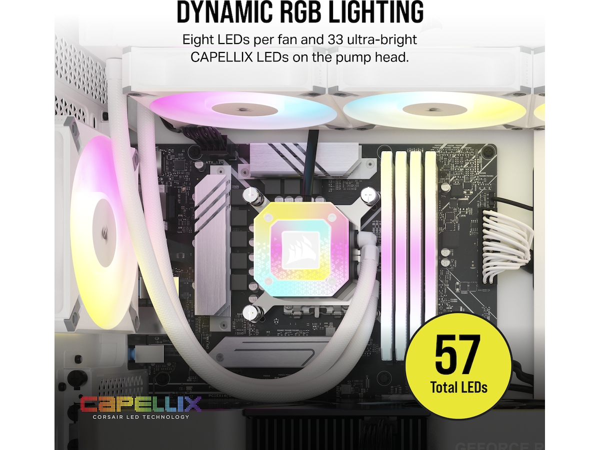 ELITE CAPELLIX XT-pumpehodet har 33 ekstra lyse CAPELLIX RGB-lysdioder som lyser sammen med RGB-viftene. Når du også får kraftig, men støysvak kjøling, vil anlegget ditt ta seg bra ut og fungere enda bedre.