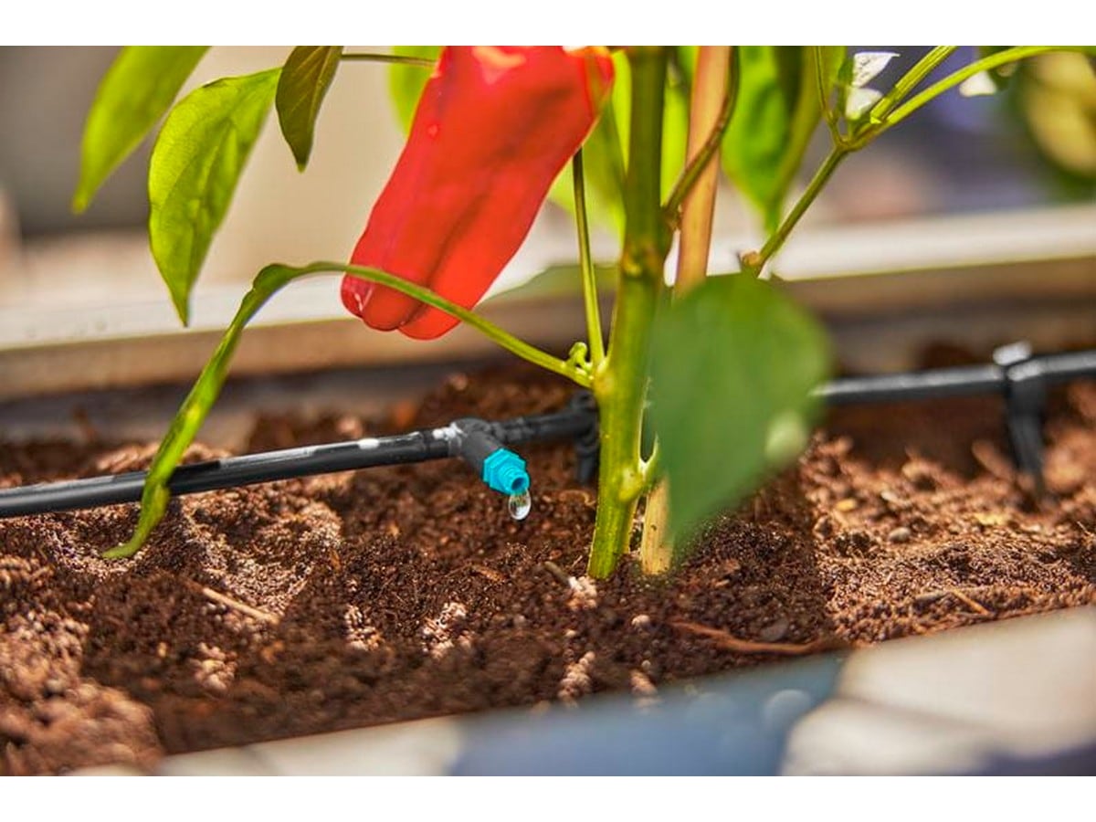 De medfølgende ende-drypphodene kan justeres (0–15 l/t) og er derfor ideelle for potteplanter med ulikt vannbehov. De indre drypphodene er ideelle for blomster i krukker og planter i kasser og kan også justeres etter vannbehovet takket være de medfølgende reguleringsventilene.