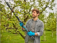 Batteridrevet teleskopstangsaks 250/18V P4A i komplett sett fra GARDENA hjelper deg med enkelt å beskjære på høye høyder fra bakken. Teleskopstangen når en lengde på opptil 2,5 meter og lar deg nå totalt opptil 4 meter under beskjæring. Takket være det avtakbare skaftet er teleskopstangen enkel å transportere og oppbevare.