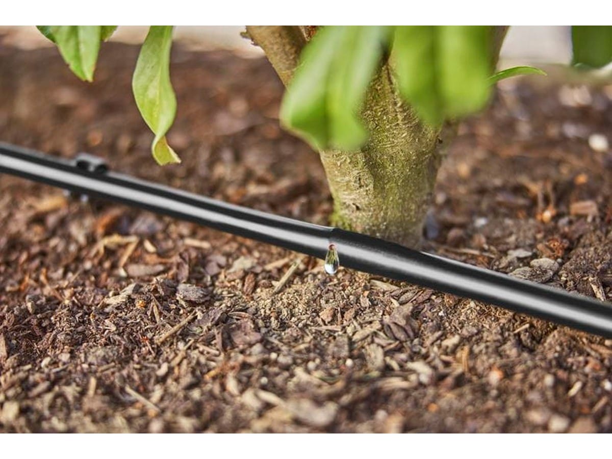 Dryppvanningslangen med integrerte drypphoder er ideell for vannbesparende dryppvanning av planterader på opptil 50 m, som hekker, busker og busker.