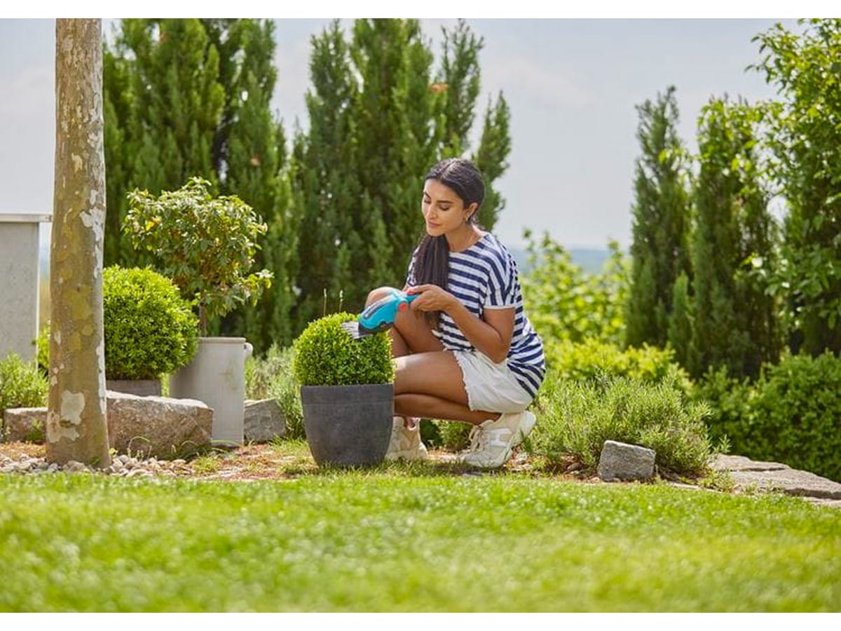 Den batteridrevne gressaksen ComfortCut Li fra GARDENA hjelper deg med å klippe plenkanter og små busker, som buksbom. Bladet er presisjonsslipt og er belagt med non-stick-belegg for langvarig skarphet. Det gir en jevn, presis og ren klipp. Kvalitetsbladet er laget i Tyskland.