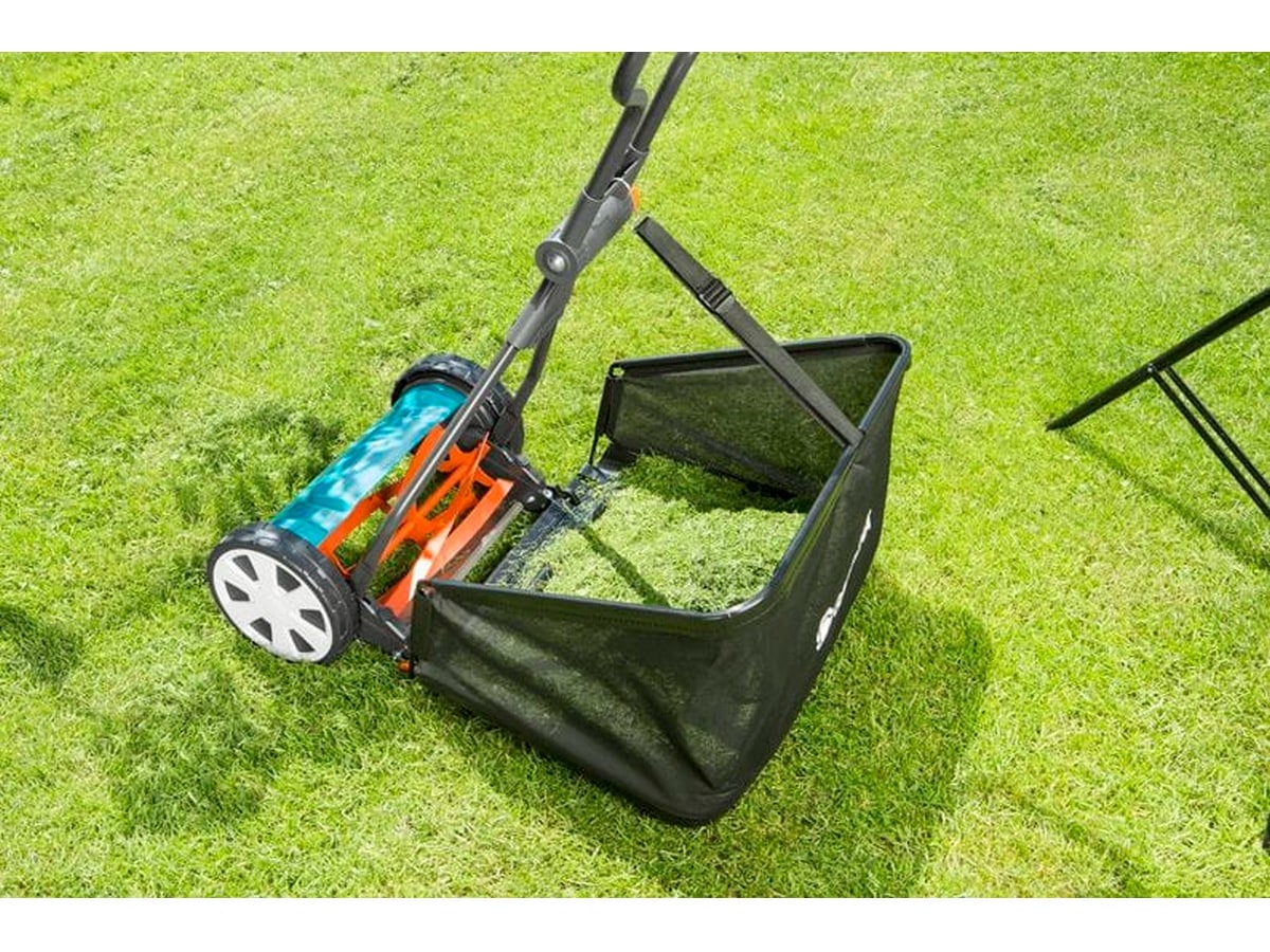 Med sin sammenleggbare ramme er sylindergressklipperen enkel å transportere, og den muliggjør også plassbesparende oppbevaring.