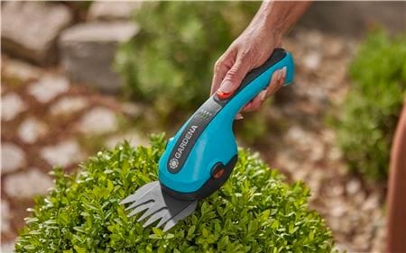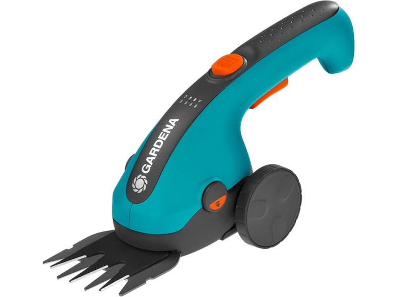Den batteridrevne gressaksen kan gjøre om til en busksaks med det separat tilgjengelige buskbladet (art.nr. 9863-20).
