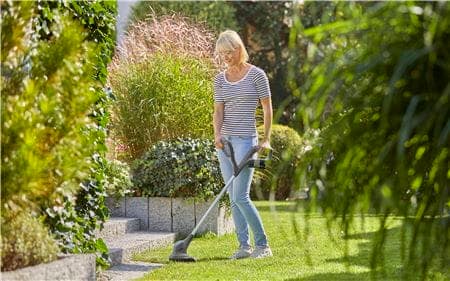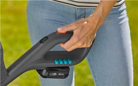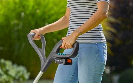 Batteritrimmer SmallCut 23/18V P4A Klar-til-bruk fra GARDENA er en ekstra lett batteritrimmer for enkel trimming av plenkanter. Produktet har en lav vekt på kun 2,0 kg, inklusive batteri. Det store håndtaket og det ekstra fronthåndtaket er ergonomisk utformet. Dette tilrettelegger for en behagelig arbeidsstilling. RotorCut har en arbeidsbredde på 23 cm som sikrer presise, effektive og rene kutt. SmallCut egner seg ypperlig for trimming av plenkanter og områder der gressklipperen ikke når frem. LED-displayet på håndtaket viser batteriets ladestatus. Håndtaket rommer også fire ekstra skjæreblader. Fulladet 2.0Ah-batteri varer i rundt 40 minutter.