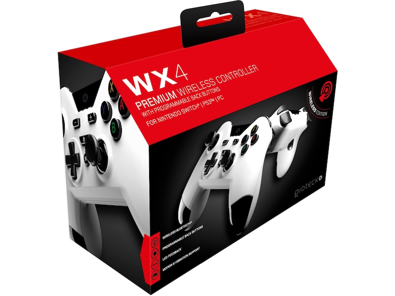 Bli proff, og bytt ut Joy-Con™-kontrollerne med WX-4 – det ultimate innen pro-gaming-kontroll for Switch™. Vår tradisjonelle design lar deg spille komfortabelt i timevis. Bli elite og få fordelen med programmerbare tilbakeknapper, kartlegg på farten til dine preferanser. Med bevegelses- og vibrasjonskompatibilitet leverer WX-4 imponerende, oppslukende spilling.