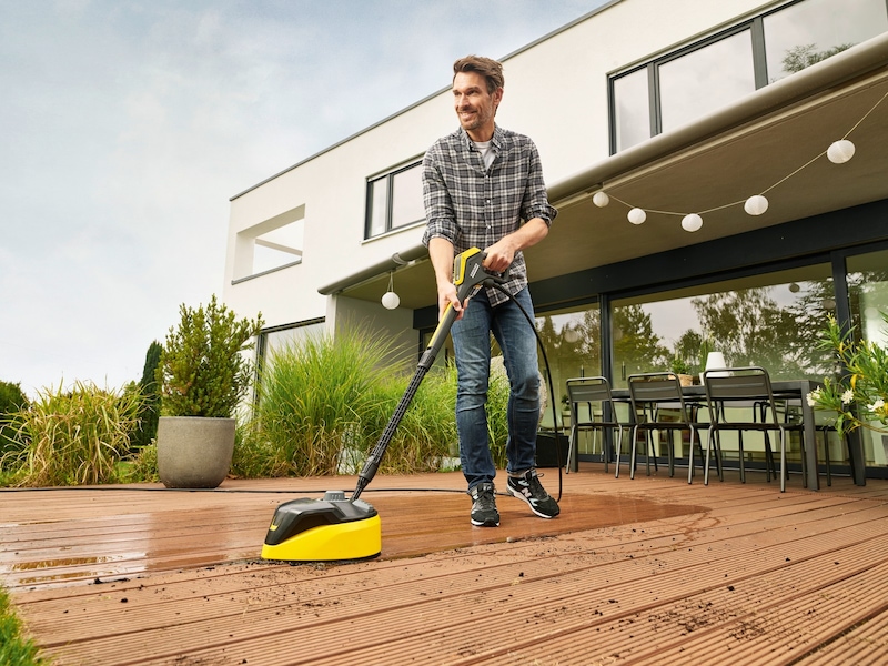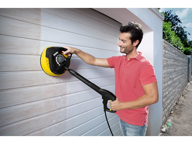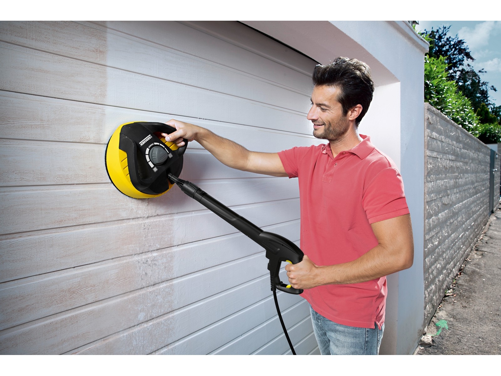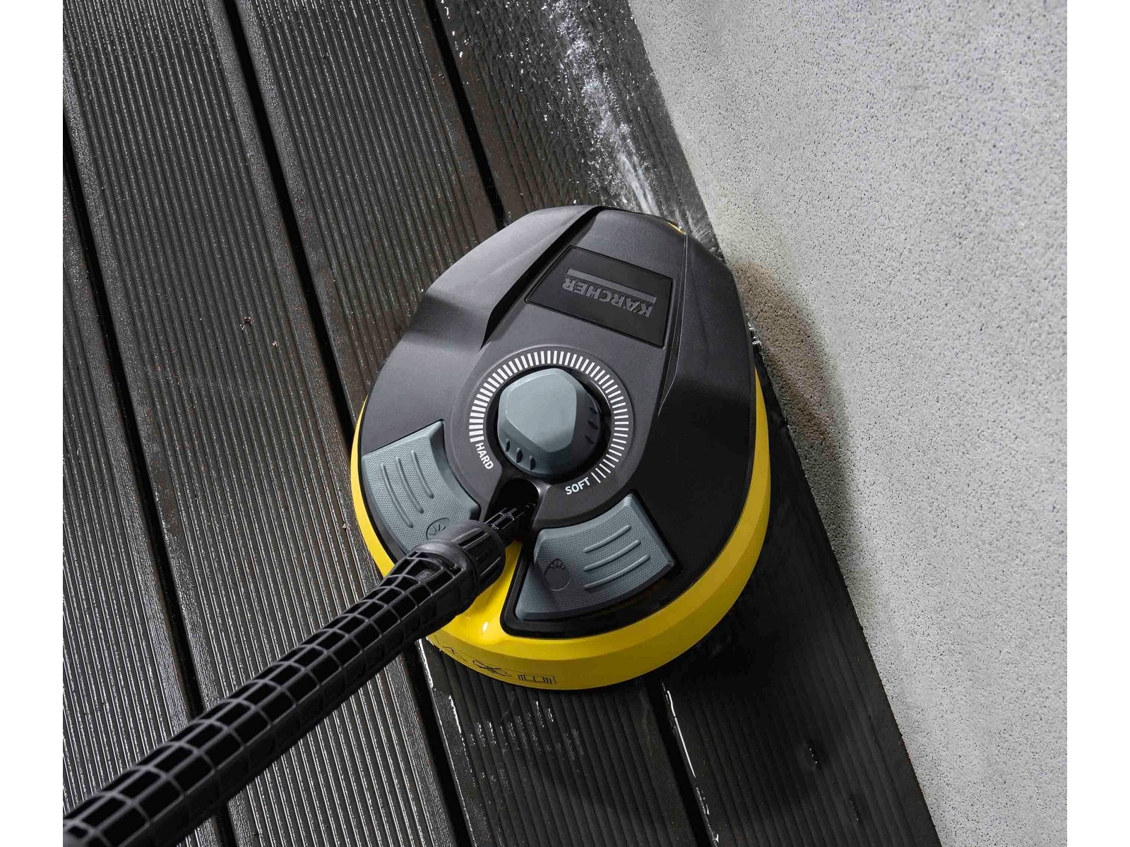 T7 er et effektivt verktøy for rengjøring av uteområder uten sprut. Den roterende twin-jet-armen fjerner smuss fra plattingen og andre store flater, og sparer ca. 50 prosent av tiden din sammenlignet med rengjøring med sprøytelanse. Det spisse designet sikrer effektiv rengjøring i hjørner og kanter.