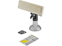 Med borrelås kan mikrofiberkluten lett festes og kan raskt byttes ut. I tillegg følger det med en skrape som hjelper deg med å fjerne fastsittende smuss fra vinduet.