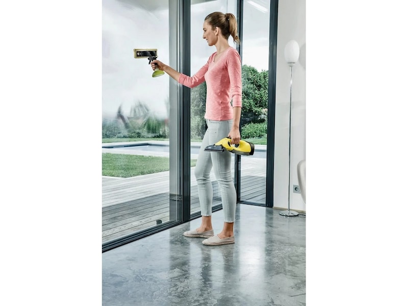 Med det nye sprayflaskesettet kan både brede og smale vinduer tørkes enkelt.