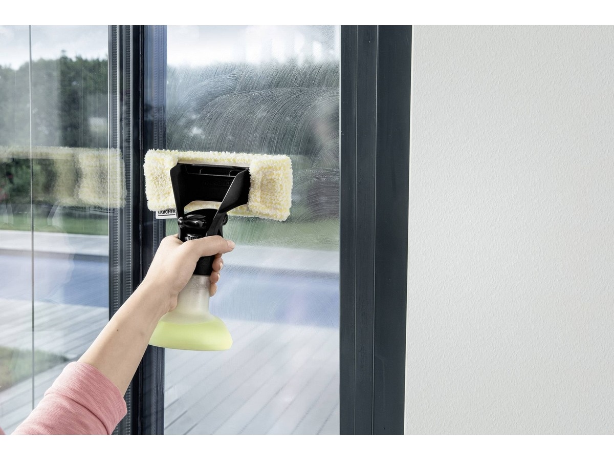 Den perfekte kombinasjonen av sprayflaske og mikrofiberklut garanterer effektiv rengjøring og, i kombinasjon med den batteridrevne Window Vac, helt rene vinduer.