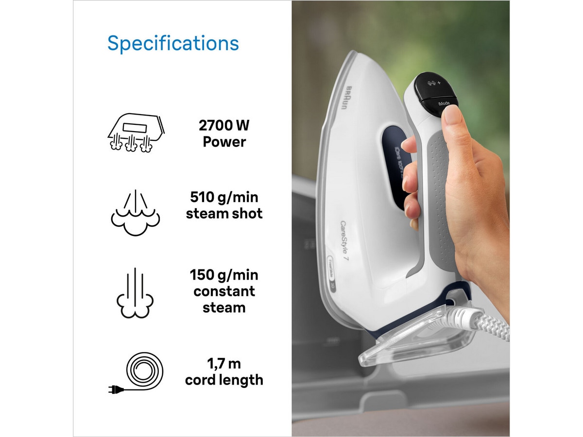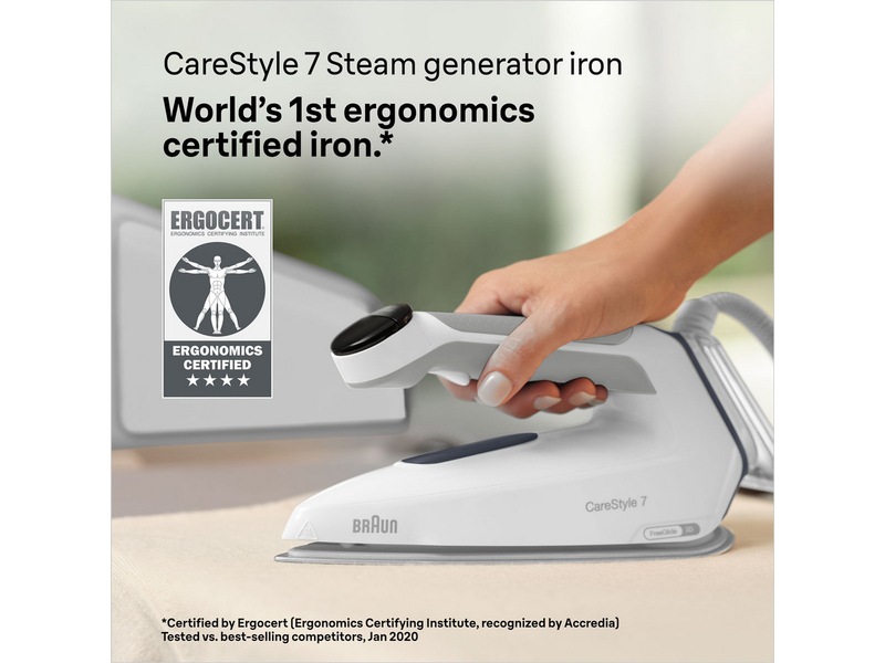 Med denne dampstasjonen fra Braun får du Freeglide 3D-teknologi, som gjør at sålen er formet som et snowboard, og du kan derfor stryke både forover og bakover, uten å lage bretter på for eksempel skjorta. Sålen er et kraftig anodisert belegg, som glir lett over klærne og er utrolig slitesterk.