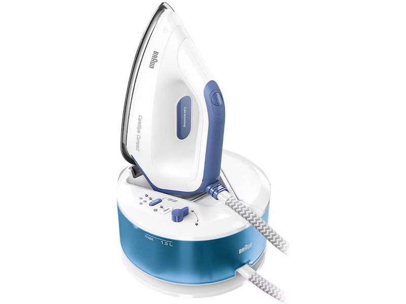 * Sparer 50% tid (intern laboratorietest, sammenlignet med Braun TS 5 dampstrykejern) og sparer 50 % plass (sammenlignet med Braun IS 7144 strykejern med dampgenerator)