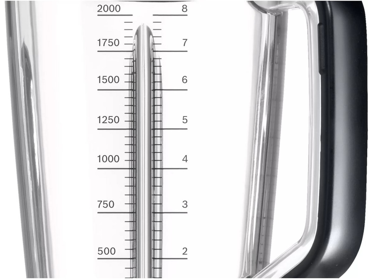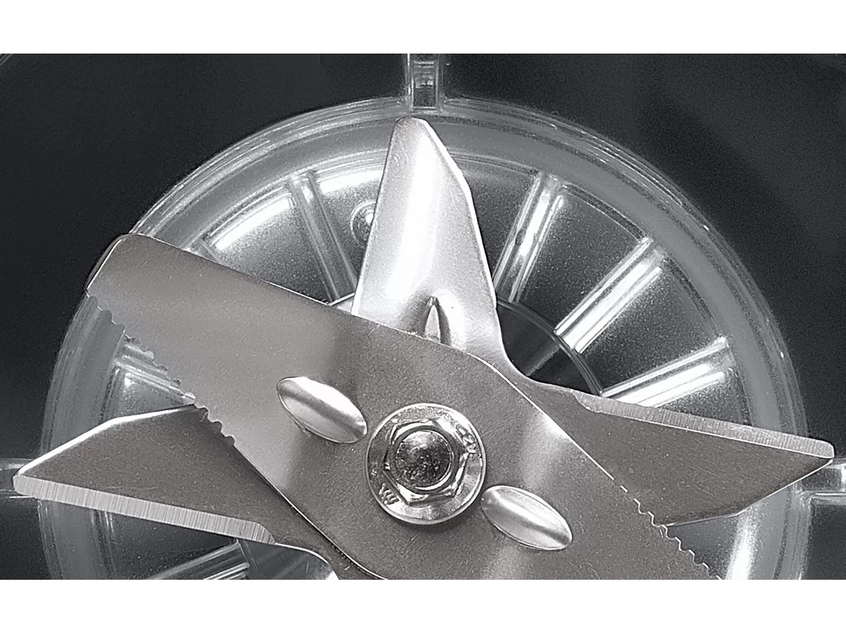 Tilbered grønne smoothier på et øyeblikk takket være 180 000 kutt per minutt. Den ekstremt kraftige motoren med 1600 watt, en motorhastighet på opptil 45 000 o/min og premium 6-bladers kniv i rustfritt stål garanterer at også harde og fiberrike ingredienser, som frosne bær og ingefær, blir blandet på en utmerket måte.