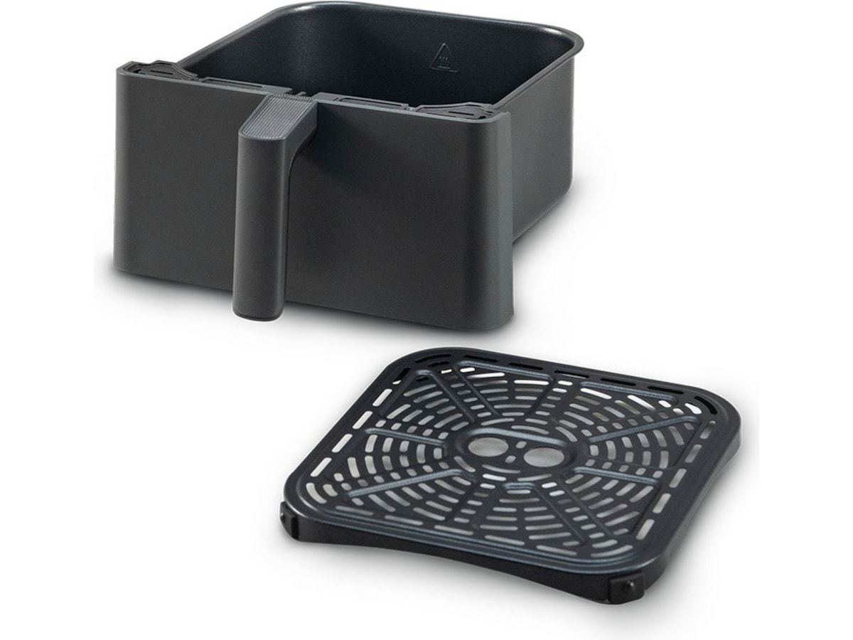 Den avtakbare matkurven er laget av non-stick PFOA- og BPA-fri aluminium som enkelt kan skylles i vasken, eller rengjøres i oppvaskmaskinen. En gjennomtrengende grillplate kan enkelt tas ut av kurven for grundig rengjøring.