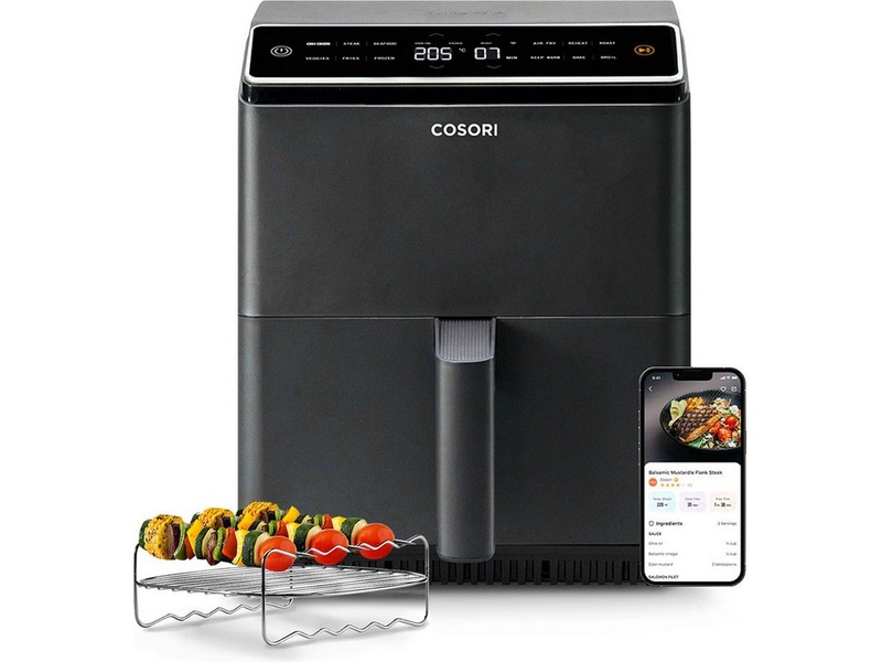 Cosori Dual Blaze Airfryer erstatter både frityrkokeren, ovnen, komfyren og mikrobølgeovnen. Ikke noe med dette, men den kan tilberede maten med opp til 90% mindre fett, uten at det går på bekostning av smaken.
