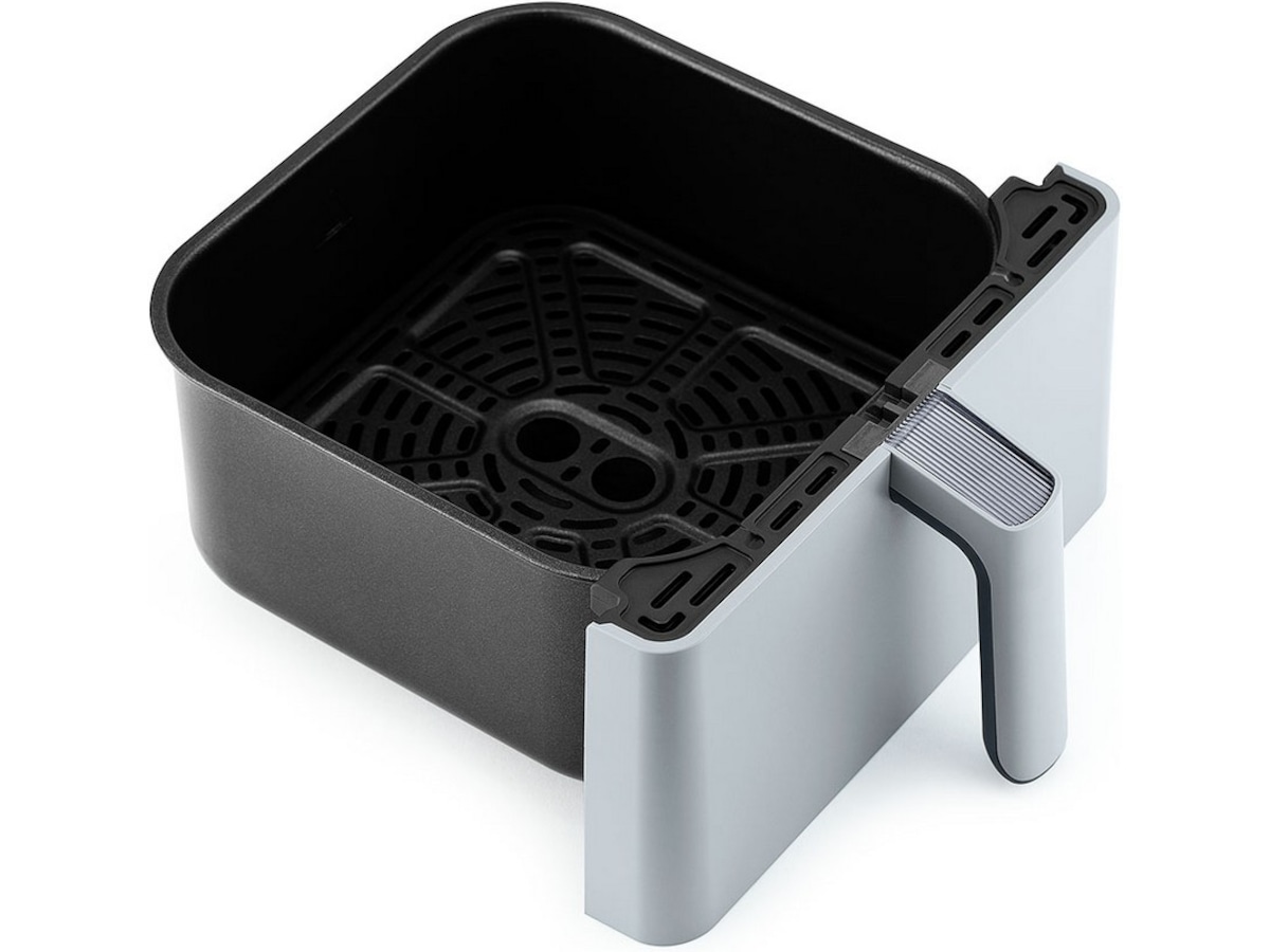 Den avtakbare matkurven er laget av non-stick PFOA- og BPA-fri aluminium som enkelt kan skylles i vasken, eller rengjøres i oppvaskmaskinen. En gjennomtrengende grillplate kan enkelt tas ut av kurven for grundig rengjøring.