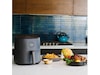 Her får du en kompakt og svært plassbesparende airfryer.Likevel har den en kapasitet på 4,7 liter, som tilsvarer en familie på 2-4 personer. Den kan tilberede store mengder mat, samtidig som den tar liten plass på kjøkkenbenken.
