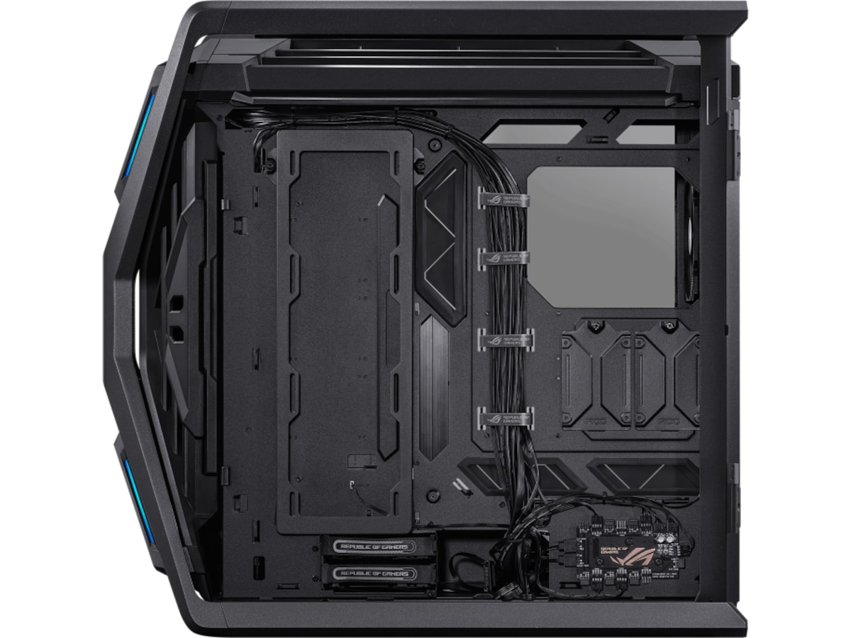 ROG Hyperion forbedrer tidligere design med en oppgradering til robuste aluminiumslegeringer innebygd i kabinettets ramme, noe som resulterer i en struktur som kan håndtere 60 % mer vekt enn ROG Strix Helios og som enkelt kan plasseres med de innebygde håndtakene.