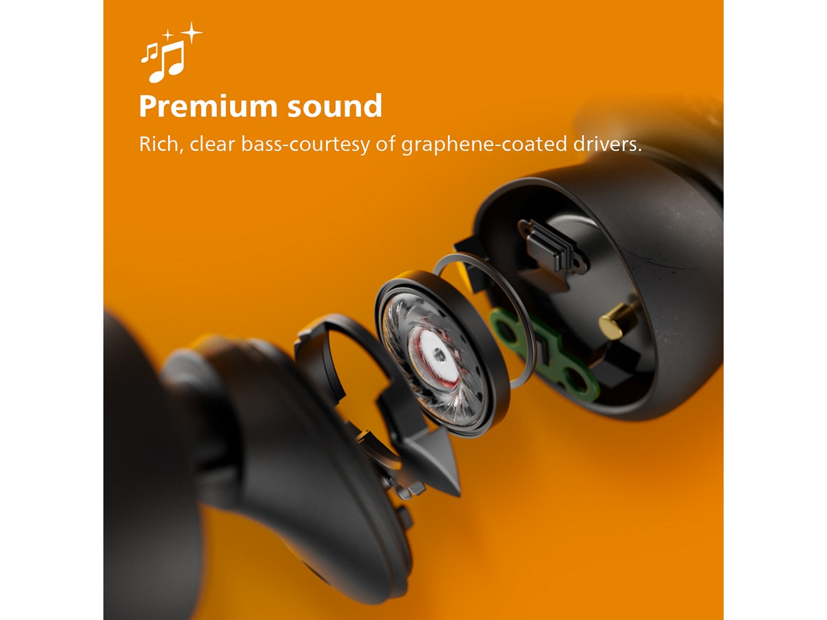 Disse trådløse hodetelefonene har detaljert lyd med fyldig, klar bass, takket være grafen-belagte drivere som gjengir alle gnistrende, høye og tunge, lave lyder. Uansett om du har iOS eller Android, kan du nyte all innlevelse du trenger for å holde energien oppe, og musikken stopper midlertidig hvis du tar en ørepropp ut.