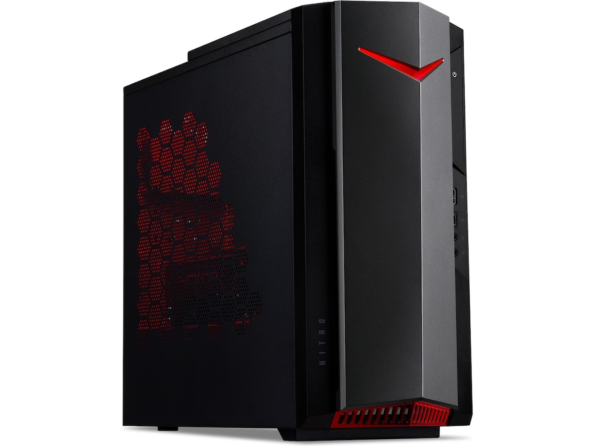 Den brennende hete Nitro 50 spill-PC-en i svart metall er alt drivstoffet du trenger for forsinkelsesfrie spilløkter med høy bildefrekvens. Fortsett og bytt innstillinger til ultra med en injeksjon av 12. generasjons Intel® Core™ i5-prosessor og NVIDIA® GeForce RTX™ 3060Ti-grafikk.